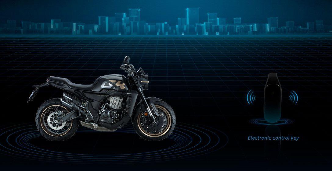 Com tecnologia de criptografia avançada O sistema de ignição sem chave 2.5 da Zontes é altamente seguro e conveniente, permitindo desbloquear a moto a uma distância de 1,5 m. É à prova d'água e pode ser usado mesmo quando a bateria está descarregada.